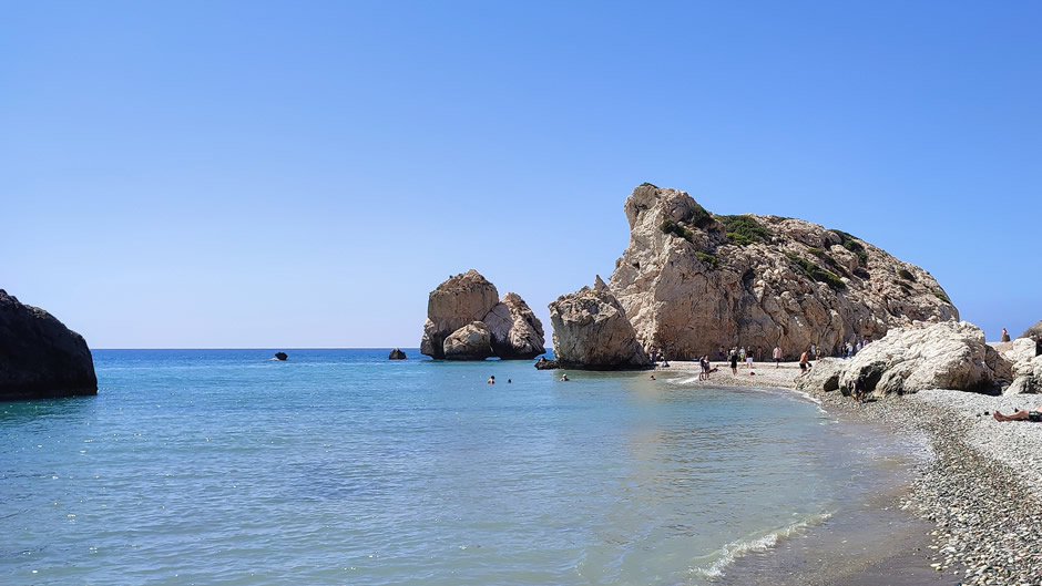 Above: The specific rock known as Aphrodite's Rock is generally considered to be the large, impressive sea stack (a steep column of rock in the sea) located off the shore at the beach of Petra tou Romiou. The entire cluster of rocks and the surrounding coastline are often referred to by the same name, but the prominent, large sea stack is the primary focus of the legend.