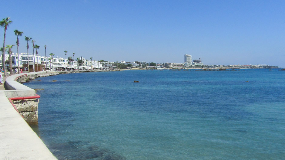 Above: Looking towards Riccia Beach, also known as SODAP Beach, considered the main central Paphos beach and situated on the southern coast.