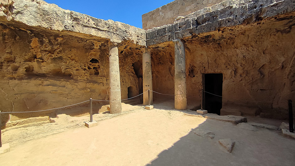 Located about 1¼ miles (2km) north of Paphos Harbour, this necropolis was used for the interment of high-ranking officials and aristocrats during the Hellenistic and Roman periods – not actual kings, despite its name. The tombs are notable for their architectural grandeur, with some featuring Doric columns and layouts that mimic the homes of the living. Their design reflects strong cultural ties with Alexandria, highlighting Paphos’s historical significance as a Mediterranean hub.