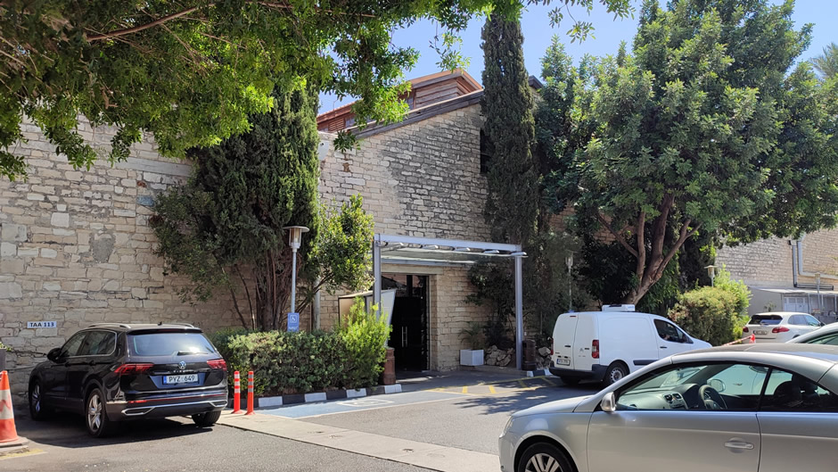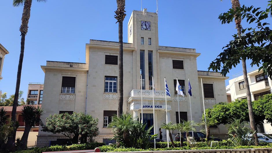 Limassol Town Hall (above) is a neoclassical building located in the heart of the city, distinguished by its symmetrical façade and columned entrance. It serves as the administrative headquarters of the Limassol Municipality, hosting civic offices and official ceremonies.