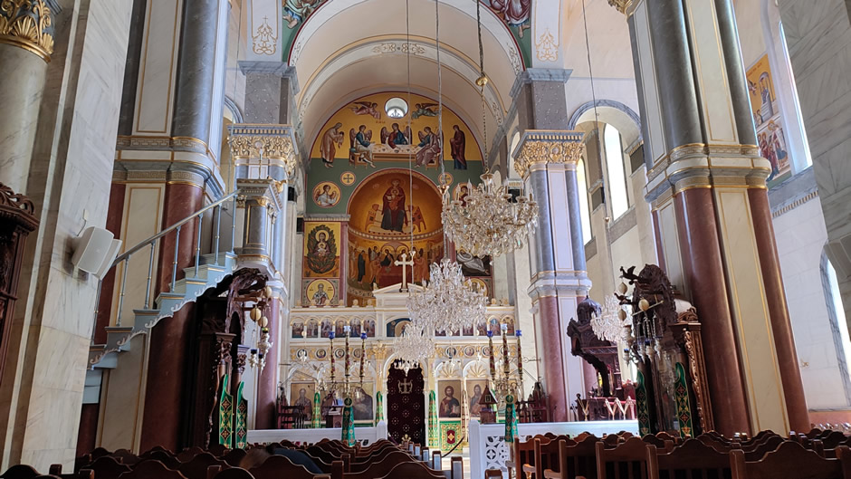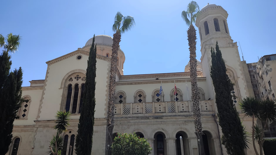 Ayia Napa Cathedral in Limassol (below) was built at the end of the 19th century on the ruins of a smaller Byzantine church and is known for its striking Byzantine-style architecture and religious art.