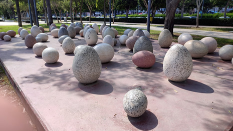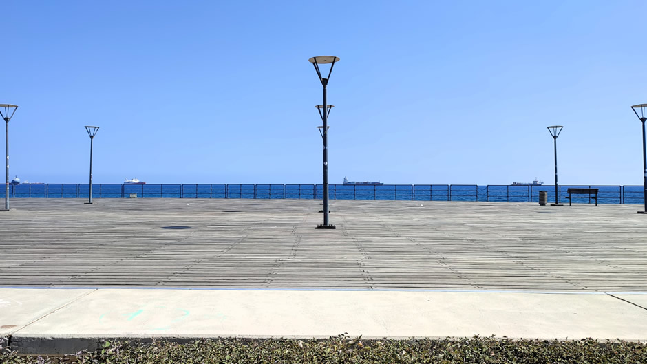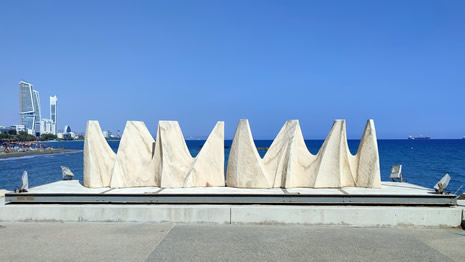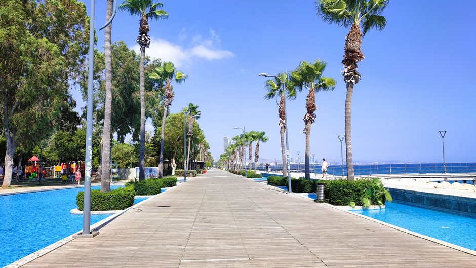 Stretching along the southern edge of Limassol, the Seaside Promenade and Sculpture Park (shown below) form a scenic ribbon between the Old Port and the city’s eastern coastline (a long, lively stretch of beaches, promenades, beach bars, cafés, playgrounds, and resort areas). This palm-lined walkway, known locally as “Molos”, is a beloved urban escape where locals jog, stroll, and cycle beside the sea.
