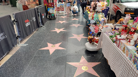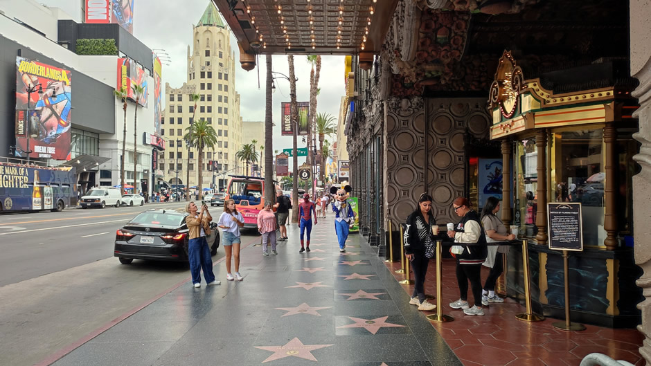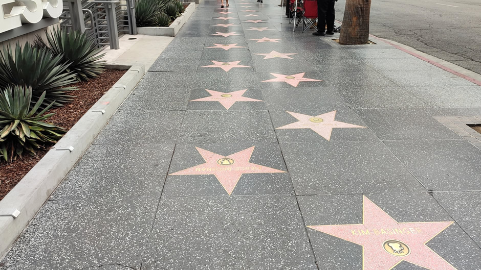 The Hollywood Walk of Fame features more than 2,800 terrazzo-and-brass stars embedded in the pavement, honouring actors, musicians, directors, and other entertainment figures. Spanning fifteen blocks of Hollywood Boulevard and three blocks of Vine Street, it attracts around ten million visitors annually and continues to add new honourees each year. Plenty of photos were taken here of the stars on the ground, so only a small sample is shown!