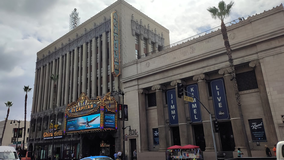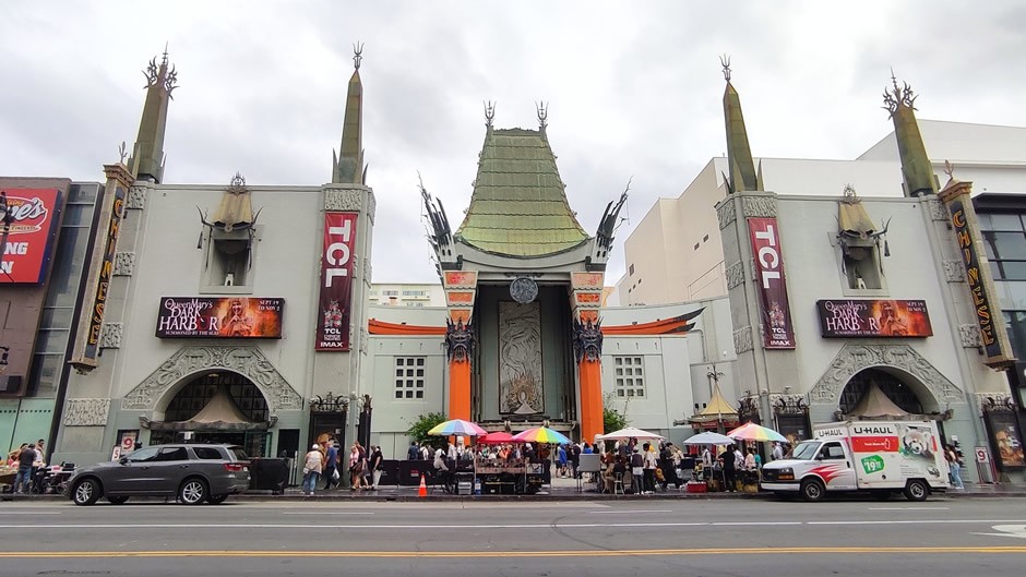 The TCL Chinese Theatre, below, (formerly Mann's Chinese Theatre and originally Grauman's Chinese Theatre) was opened in 1927 by showman Sid Grauman. It is a landmark movie palace famous for its pagoda-style architecture and forecourt of celebrity handprints and footprints. Today, it hosts premieres and screenings with IMAX technology, making it both a historic site and a modern cinema experience.