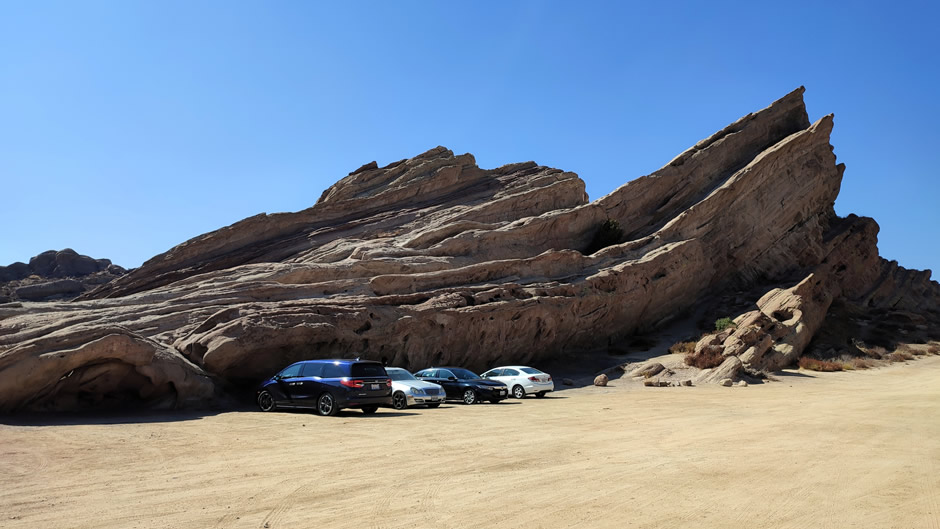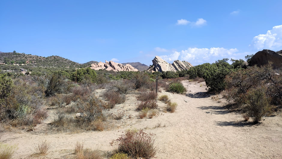 The park covers nearly 932 acres and is easily accessed from the 14 Freeway near Agua Dulce. Visitors enter through a main gate leading to parking areas close to the interpretive centre and trailheads. The layout is straightforward: paved lots near the entrance serve day visitors, while dirt roads extend toward the central formations, including the well-known “famous rocks” that rise at sharp angles from the ground.