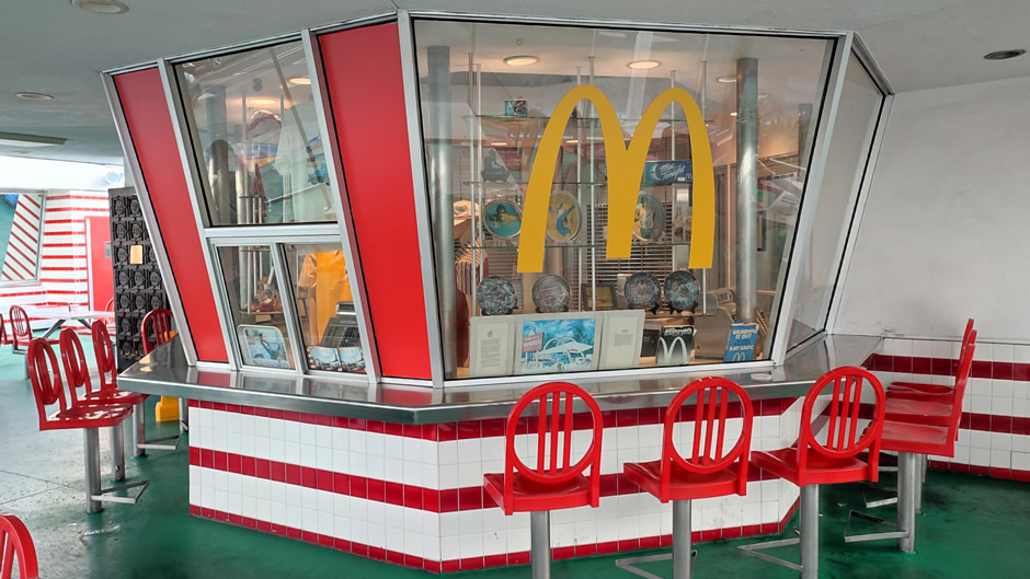 Due to declining sales, structural damage from the 1994 Northridge earthquake, and the absence of both indoor seating and a drive-up window, the Downey McDonald’s was closed, with plans to demolish it and replace it with a modern “retro” restaurant nearby. In 1994, however, the site was placed on the National Trust for Historic Preservation’s list of the 11 Most Endangered Historic Places. Public pressure and preservationist efforts led McDonald’s to restore the building over two years, reopening it with an adjacent museum and gift shop inside a replica of the original San Bernardino McDonald’s. A drive-thru window was later added in 2016. Visitors can still enjoy a meal there while experiencing a piece of early McDonald’s history.