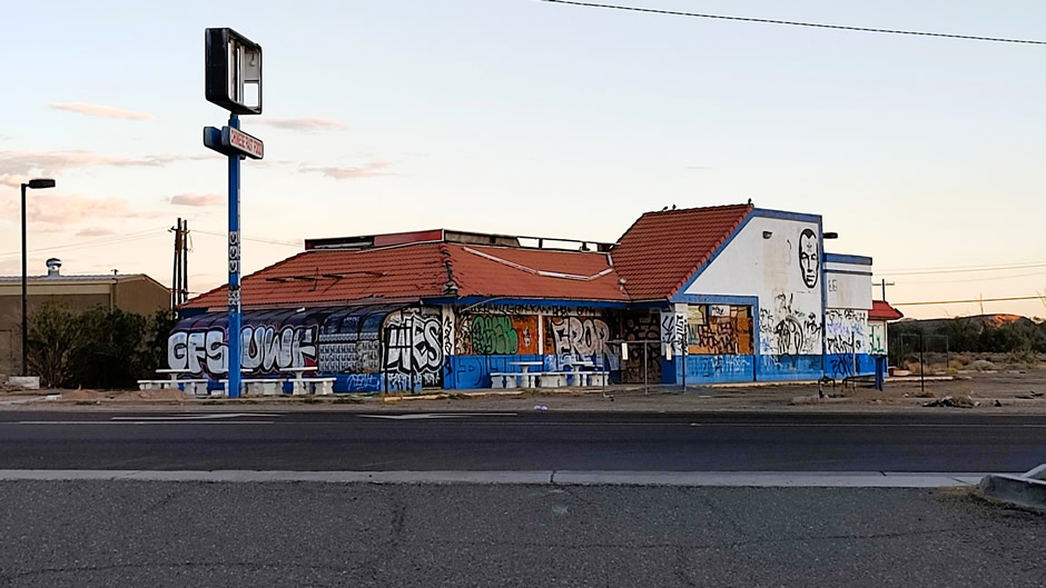 abandoned businesses tell the story of its boom-and-bust desert past.