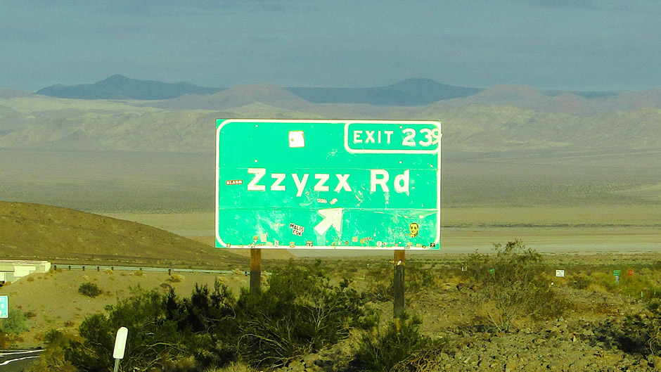 One final oddity: Approximately 7 miles south of Baker, Zzyzx Road stretches 4.5 miles through the Mojave Desert, partly paved and partly dirt, linking the Interstate southward to the settlement of Zzyzx. The settlement was originally founded in 1944 by American evangelist Curtis Howe Springer as the site of the Zzyzx Mineral Springs and Health Spa. Springer invented the name Zzyzx for the site, presenting it as the “last word” in the English language. Today it is managed as part of the Mojave National Preserve and is home to the Desert Studies Center.