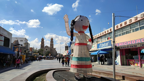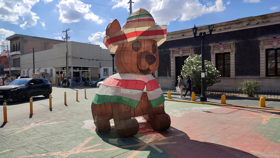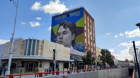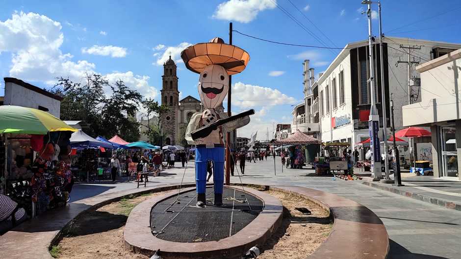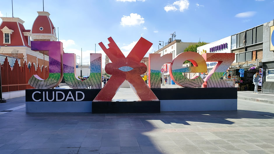 Walking back along the pedestrianised section of Calle 16 de Septiembre to just past MUREF leads to a new 12-foot-tall Juárez sign/sculpture spelling out the city’s name. It has a red “X” in front that echoes a larger landmark which is visible from El Paso, “La Equis” by artist Sebastian (a massive, iconic red steel sculpture in the shape of an X). The Juárez sign/sculpture replaced a smaller “I love CJ” sign that had often been vandalised. Locals and visitors alike now stop to take photos, and city officials see it as a symbol of pride and a refreshed image for downtown Juárez.