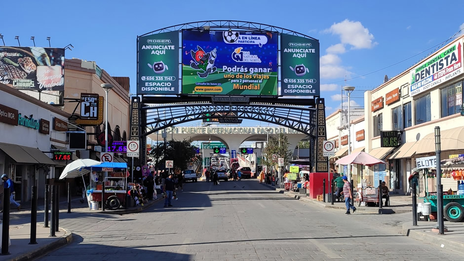 Above: Mexican side of Paso del Norte International Bridge connecting with Avenida Benito Juárez