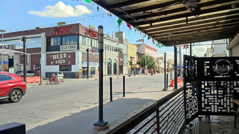 Avenida Benito Juárez (shown below) is a wide, busy street lined with shops, restaurants, and bars, reflecting the city’s reputation as a commercial corridor. The first stop was the Kentucky Bar, opened on this street during Prohibition in America (1920 – 1933) and famous for attracting visitors from the U.S. during this time when alcohol was banned. The bar claims to be the birthplace of the margarita and has hosted figures ranging from Hollywood stars to politicians. Today, it continues to attract visitors from both the U.S. and Mexico. The ambience of the establishment is described as safe, friendly, and historic, with a classic, unchanged wooden bar.