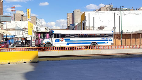 The walk began by crossing the Paso del Norte International Bridge, which connects South El Paso Street (in El Paso) with Avenida Benito Juárez. Pedestrians pay a small toll before crossing the bridge (whichever direction they are heading). Carrying only a small amount of cash, including quarters for the bridge, and no valuables, the crossing was fairly straightforward.