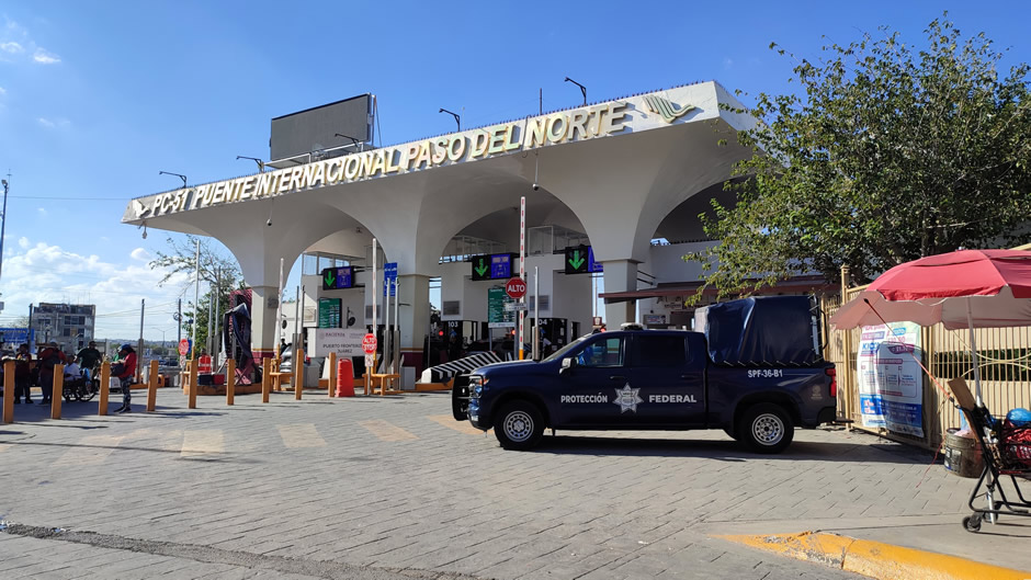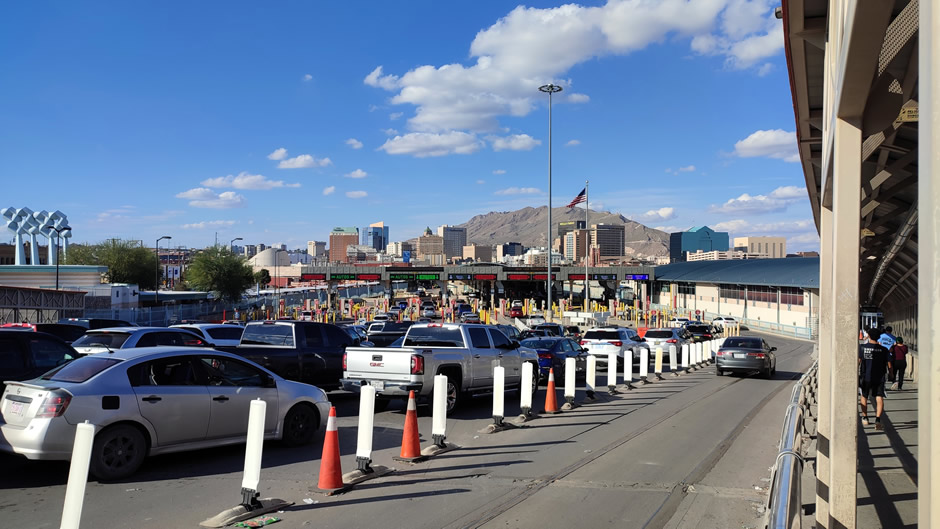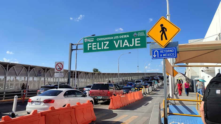 Above: Departing Mexico at the Paso del Norte International Bridge crossing