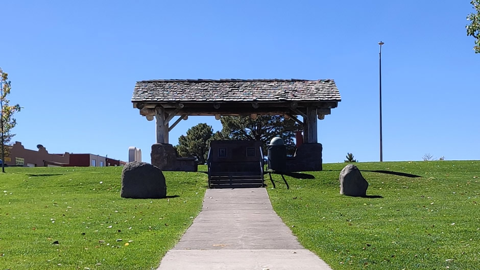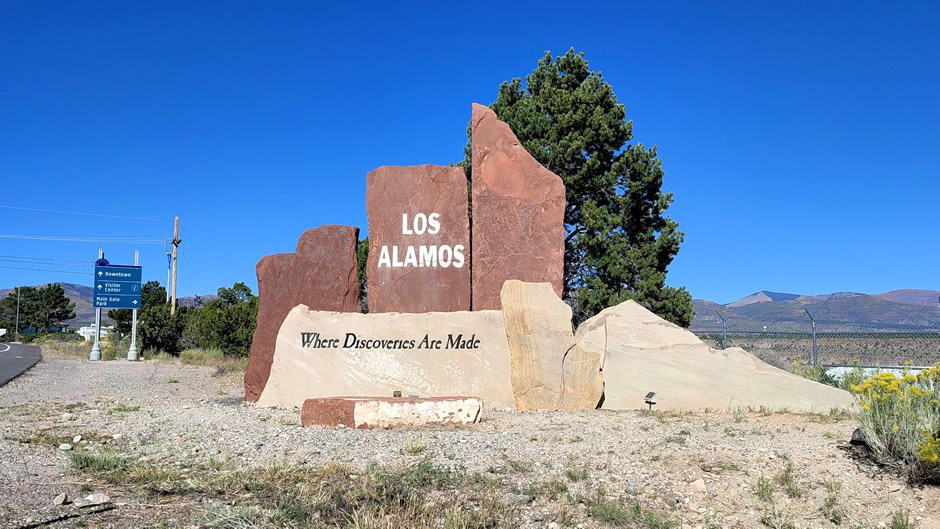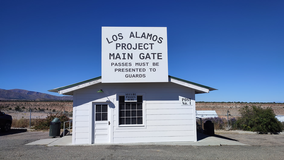 Above: About 3 miles east of Downtown Los Alamos and adjacent to the main road is the Los Alamos Project Main Gate, once the guarded entry to the “secret city”. It has been recreated at Main Gate Park, symbolising the secrecy and security of the wartime effort.