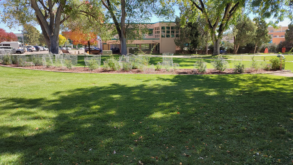 The Memorial Rose Garden (below) honours those who contributed to the Manhattan Project. It is a quiet, landscaped space with plaques and plantings that commemorate individuals and groups. The garden provides a reflective pause along the walking tour. It connects the scientific achievements of Los Alamos with the human stories behind them.