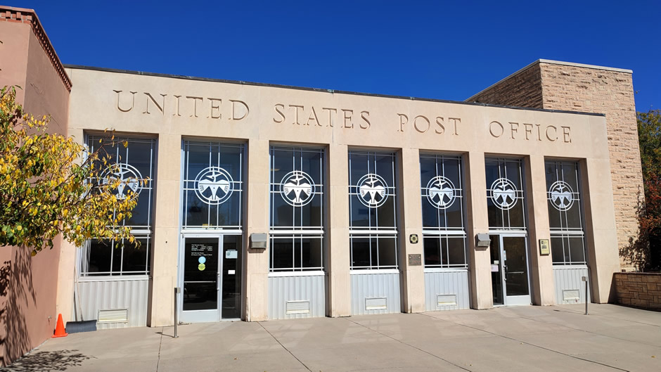 The Los Alamos Post Office (shown below) played a unique role in maintaining secrecy during the Manhattan Project. For secrecy and security, residents used coded addresses instead of the town’s name. The building symbolizes the controlled communication of the wartime community. It remains an active post office today.