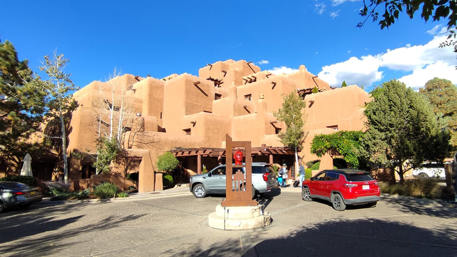 Above: The centrally-located Inn and Spa at Loretto is one of Santa Fe’s most recognisable hotels. It was built in 1975 but designed to resemble a multi-storey pueblo-style adobe village, echoing the architecture of Taos Pueblo. The author of this webpage did not stay here, but was drawn to its architecture.
