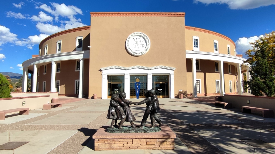 The New Mexico State Capitol (shown below), known as the Roundhouse, is the only circular state capitol in the United States. Completed in 1966, the building blends Pueblo Revival and Greek Revival styles. It houses both legislative chambers and features extensive public art collections. The building is one of eleven of the fifty state capitols in use that do not feature a dome.