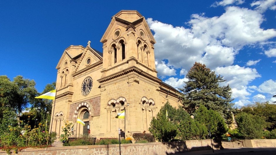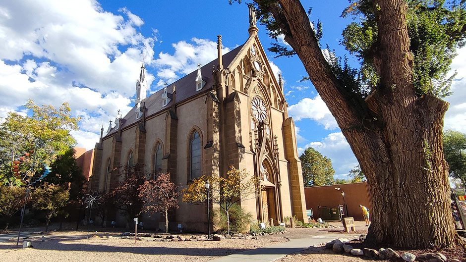 The Cathedral Basilica of St. Francis of Assisi (shown below): Built between 1869 and 1887 under Archbishop Jean Baptiste Lamy, the cathedral is designed in Romanesque Revival style, contrasting with the surrounding adobe architecture. The cathedral replaced earlier adobe churches destroyed during the Pueblo Revolt and later rebuilt. Inside is La Conquistadora, the oldest Madonna statue in the United States, brought from Spain in 1625.