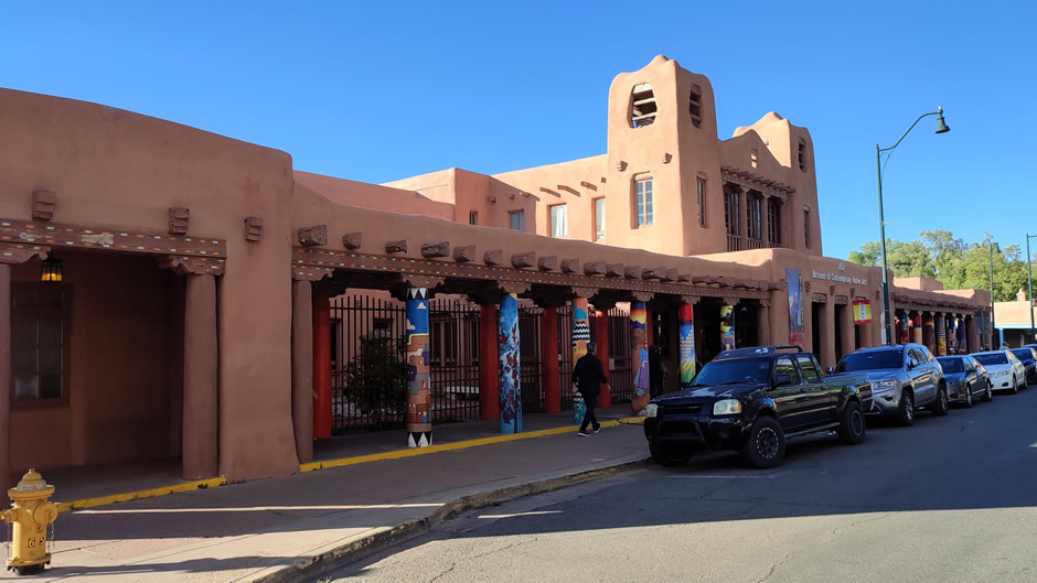 Additional notable sights around Downtown Santa Fe include the Georgia O’Keeffe Museum which houses the largest collection of her paintings, drawings, and personal items, the IAIA Museum of Contemporary Native Arts, and the New Mexico Museum of Art which opened in 1917 and is noted for its Pueblo Revival architecture and collection of Southwestern art.