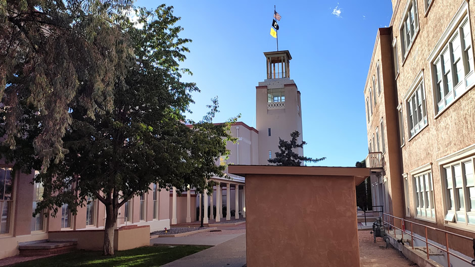 The Los Alamos History Museum (below) houses artefacts, photographs, and exhibits about the Manhattan Project and the town’s development. It is located in a historic building and provides context for the walking tour. Displays cover both the scientific breakthroughs and the social fabric of the wartime community. The museum is a key stop for understanding Los Alamos in depth.