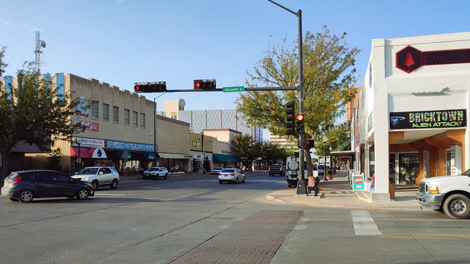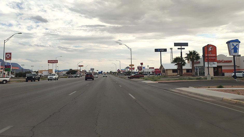 Above: White Sands Boulevard is Alamogordo’s main commercial corridor, home to hotels, restaurants, and major stops like the White Sands Mall. It also serves as a gateway for visitors heading to White Sands National Park, with the city’s visitor centre located along the boulevard.