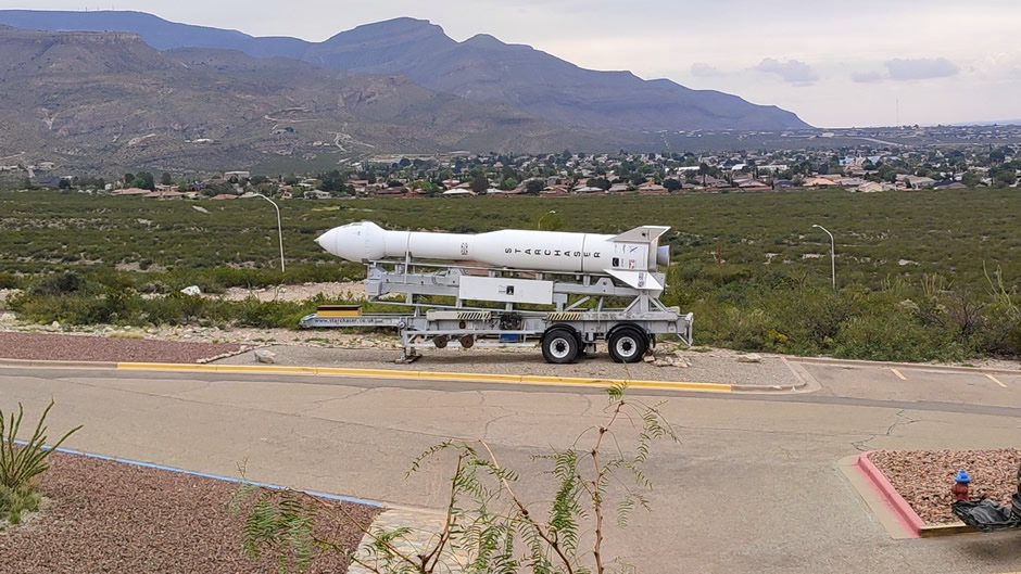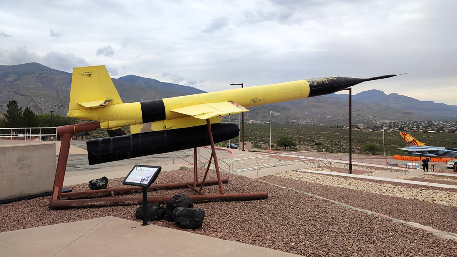Above: The Starchaser rocket, an early prototype from the UK’s private Starchaser Industries programme aimed at developing reusable suborbital spacecraft, stands outside the New Mexico Museum of Space History. Its presence adds a modern commercial counterpart to the museum’s historic rocket lineup, linking today’s private-sector ambitions with the region’s long legacy of experimentation at nearby White Sands.