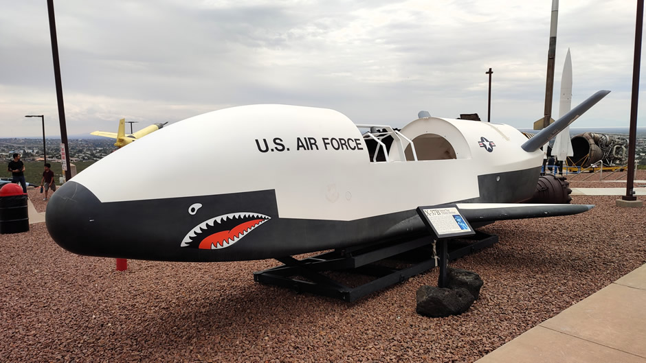 Above: Boeing X-37B orbital test vehicle Mock-up. The X-37B is a reusable unmanned spacecraft.