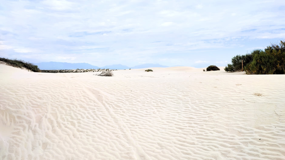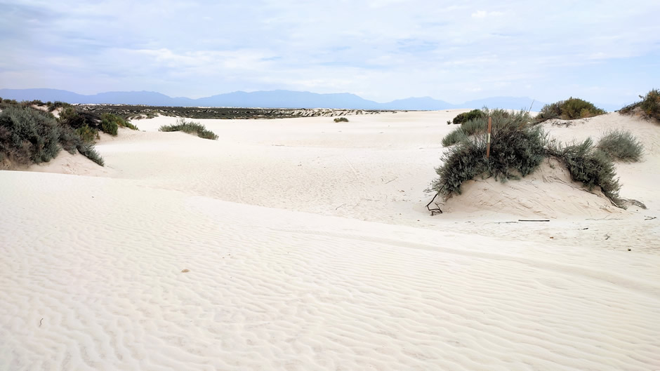 From the park entrance, the Dunes Drive extends about 8 miles into the heart of the dune-field. This paved route allows visitors to reach picnic areas, hiking trails, and backcountry zones, with distances clearly marked for short walks or longer treks across the shifting sands. The dunes themselves were formed from gypsum deposits left behind by a shallow sea during the Permian period. Groundwater beneath the basin stabilises the dunes, preventing them from blowing away entirely despite constant wind activity. Flora and fauna have adapted to the gypsum environment. Species such as the soaptree yucca, lizards, and small mammals survive in the dunes, often with pale colouration for camouflage. Human presence here stretches back thousands of years, with evidence of ancient peoples leaving footprints and artefacts. In the late 1800’s, European American settlers moved into the basin, establishing ranches and small communities.