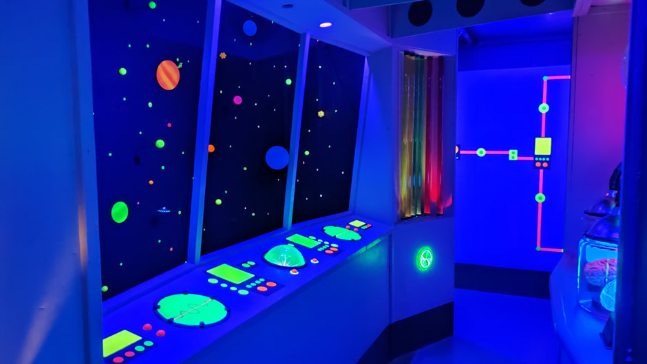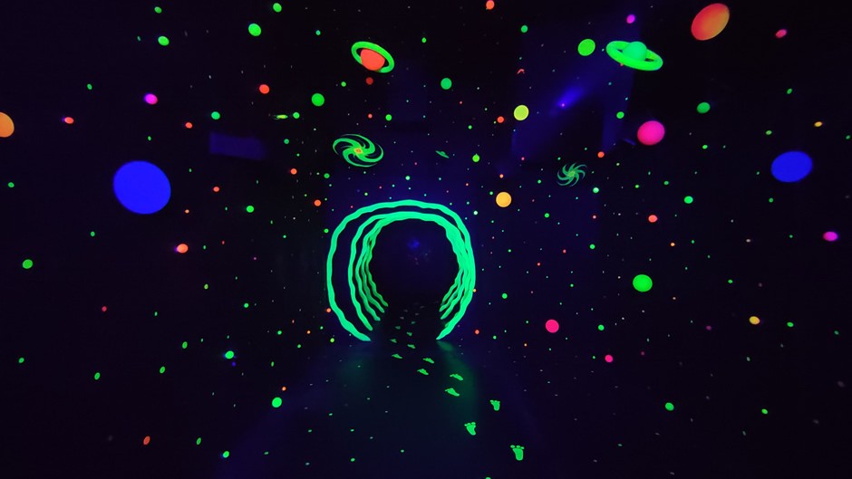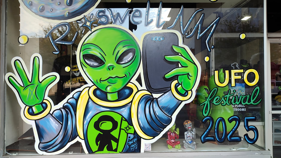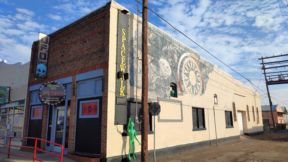 The Roswell UFO Spacewalk is an immersive blacklight art adventure in Downtown Roswell that takes visitors on a playful journey through outer space and UFO lore.