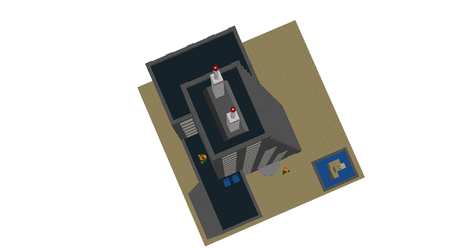 The pictures on this webpage show a prototype model, which was built prior to construction of the main model (and included at the base of the final model, surrounded by a “pond” and note the grey bricks indicate location of the stairwell/lift section), the stairwell/lift section itself, and pictures representing various stages of the build.