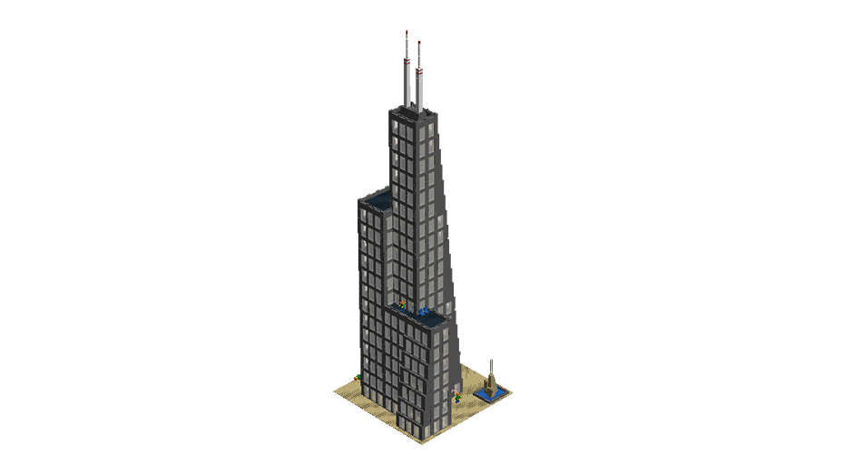 Entirely my own design, although just 19 floors high, there may possibly be some influence from the likes of the Shard and the Leadenhall (“The Cheesegrater”) buildings in London, and also The Hancock Center and the Willis (Sears) Tower in Chicago. Included in the build at ground level is a smaller prototype model which was made first.