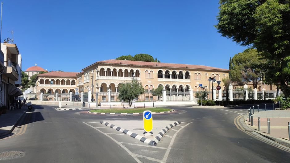 The Archbishop's Palace in Nicosia (below) is a grand, neo-Byzantine building that serves as the official residence of the Archbishop of the Church of Cyprus. Built between 1956 and 1960, it stands next to the old palace and houses the Byzantine Museum, National Struggle Museum, and Library of the Archbishopric, making it both a religious and cultural landmark in the heart of the capital.