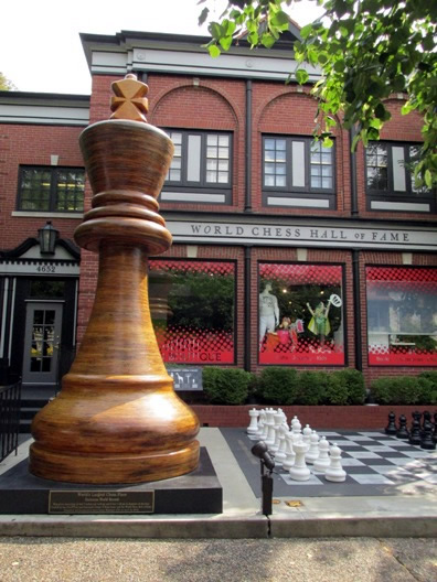 Shown here are photographs taken from a visit to the “World Chess Hall of Fame”, a non-profit, collecting institution situated in the Central West End neighbourhood of St. Louis. Rex Sinquefield helped with bringing this Mecca for chess fans to the city in 2011. It is the only institution of its kind anywhereand inside the 6,000 square foot centre can be found a museum, a hall for tournaments, classrooms, a library, a shop and an area where live chess tournaments can be followed. Exhibits on multiple levels include artworks, actual boards and pieces used in world chess championship tournaments (think Boris Spassky and Bobby Fischer)and the Hall of Fame which in the chess world is akin to stars on the Hollywood Walk of Fame in the world of acting. Some 1,000 members of varying skill levels attend classes here on this dedicated site which serves to present “World-class exhibitions that explore the connection of chess to art, culture, and history”. It was on a personal note that the author of this webpage saw recorded in the Hall of Fame a dedication to the Soviet and Russian chess grandmaster Vasily Smyslov (1921-2010). The author’s father won a game against him in London, during a simultaneous exhibitionyears gone by, and as a passionate player went to Russia in the 1960’s to play for Cambridge University. As far as the author is concerned here, due to lack of intelligence and wasting my time growing up playing computer games in the 1980’s, I know I have reached the age whereby Icould never be capable of reaching such levels of competence in this number one game of all games; my personal motivation to play chess was diminished at an early age, but admire those whom play with passion. For more information on the World Chess Hall of Fame, a link to the website may be found Here. More photos of the visit can be seen in the thumbnail gallery below (click on an image to enlarge):