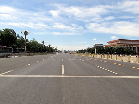 Tiananmen Square (Tiananmen Guangchang) was once the world's largest public square and is situated in the centre of Beijing, China. Still one of the largest in the world, it was originally designed and built in 1651 during the Qing Dynasty (1644-1912). The square's name comes from the Tiananmen ('Gate of Heavenly Peace') which was first constructed in the 15th century during the Ming Dynasty (1368-1644) at the same time as the construction of Beijing City . This gate is situated at the northern end of the square and was once the main gate to the Forbidden City (the Chinese Imperial Palace from the Ming dynasty to the end of the Qing dynasty (1420 to 1912)). In 1958, it was enlarged to four times its size and today is capable of holding 1 million people. The square, which measures some 880 by 500m, is laid out on a north-south axis, like Chinese temples are, employing a conventional layout that is in keeping with tradition, whilst it's ornaments and buildings are mainly Soviet-inspired. Tiananmen Square is suitable for large gatherings of people; it has been the site of a number of political events, mass military displays and student protests. On this webpage, we will take a brief look at the main sites in and on, what is considered to be the symbolic centre of the Chinese Universe.